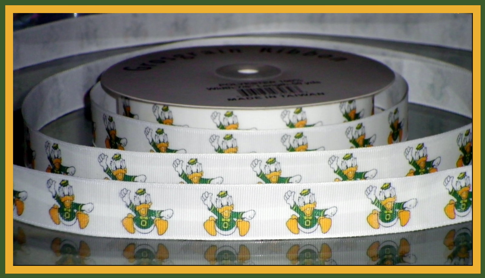 7/8" Oregon University Ducks Inspired Custom Printed Grosgrain Ribbon