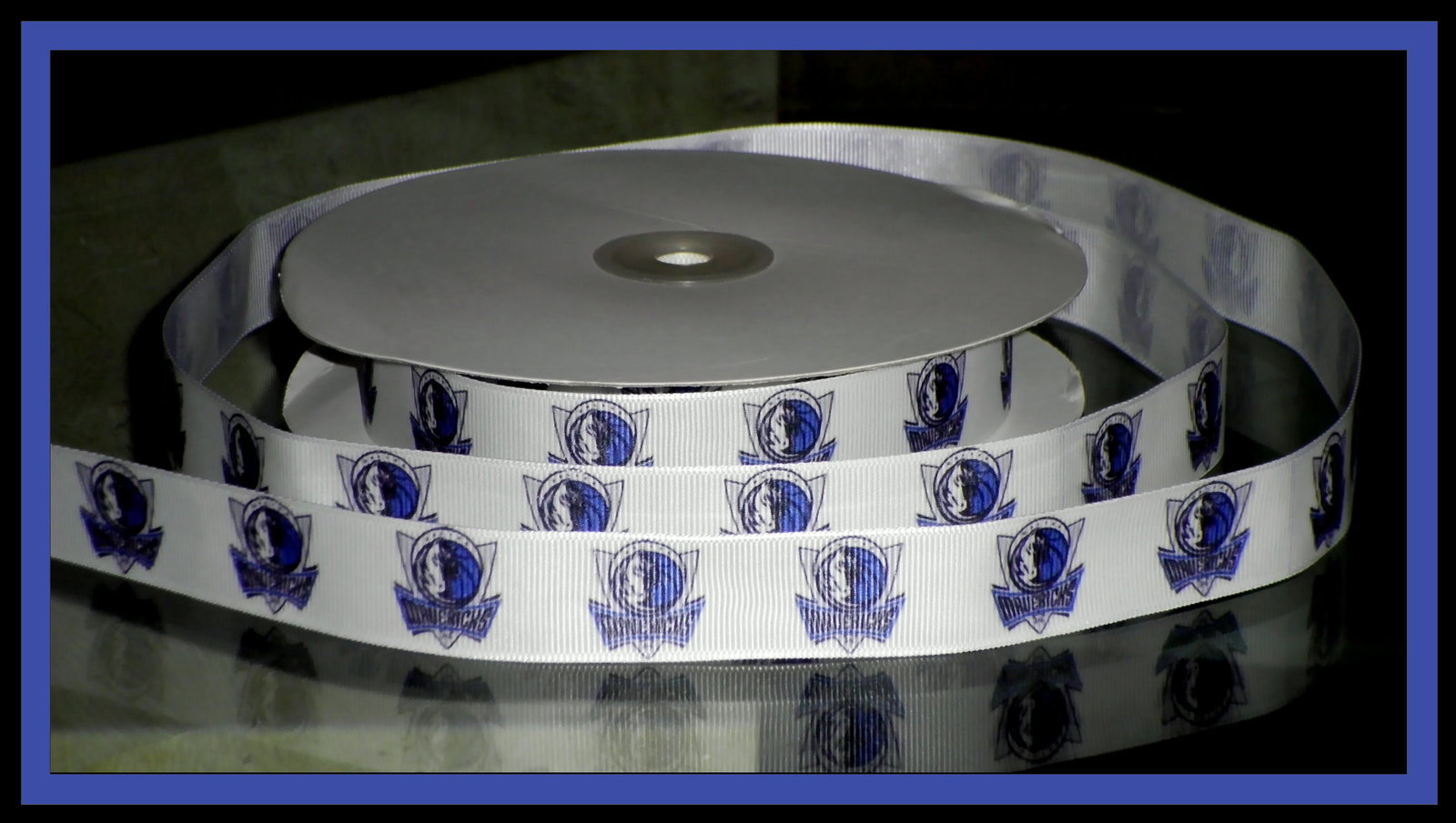 You will receive 2 continuous yards of custom designed and hand-printed 7/8" Mavericks inspired grosgrain ribbon. Â