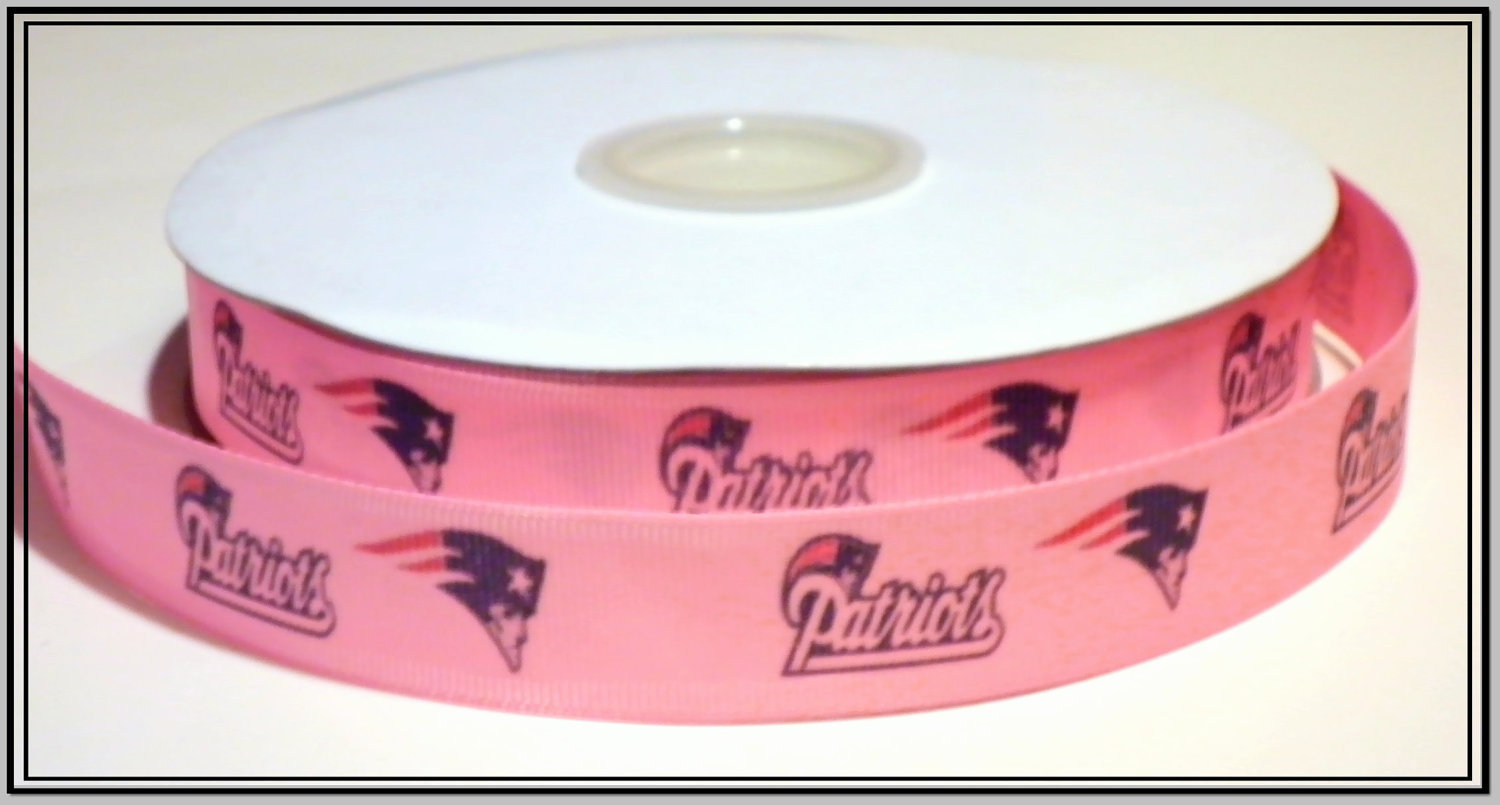 You will receive 2 continuous yards of custom designed and hand-printed 7/8" pink Patriots  inspired grosgrain ribbon. Â
