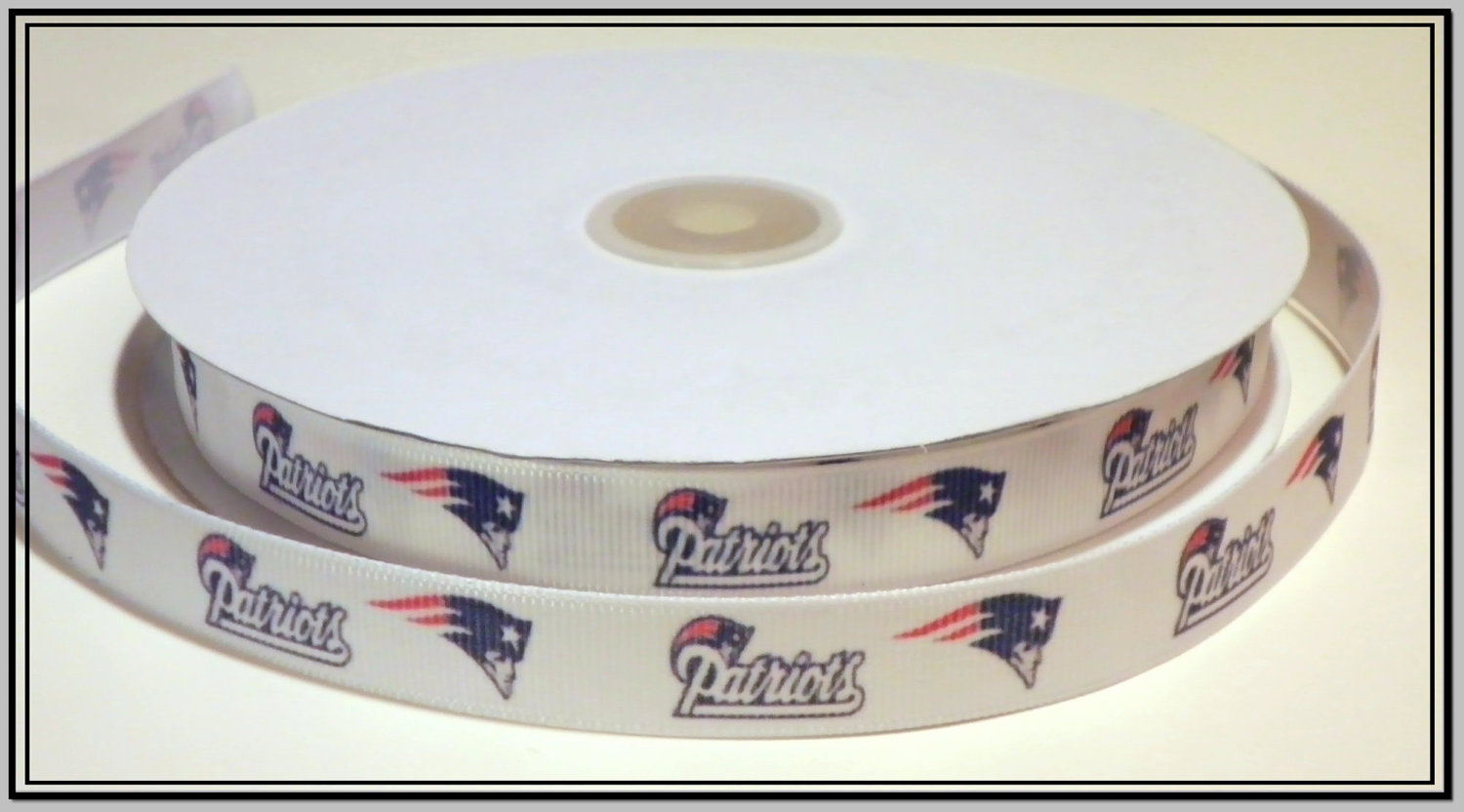 You will receive 2 continuous yards of custom designed and hand-printed 5/8" Patriots inspired grosgrain ribbon. Â