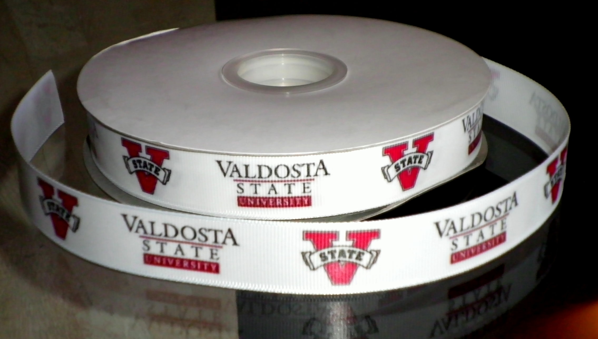 You will receive 2 continuous yards of custom designed and hand-printed 7/8" Valdosta State University inspired grosgrain ribbon.