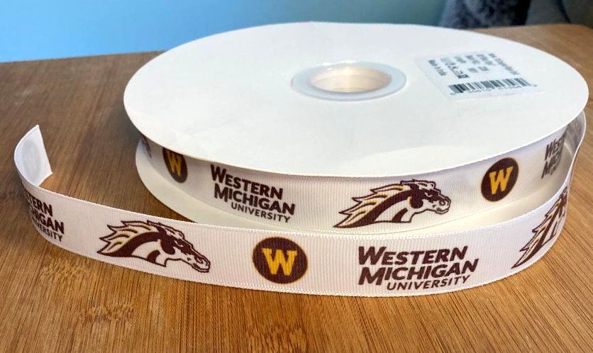 You will receive 2 continuous yards of custom designed and hand-printed 7/8" Western Michigan University inspired grosgrain ribbon.